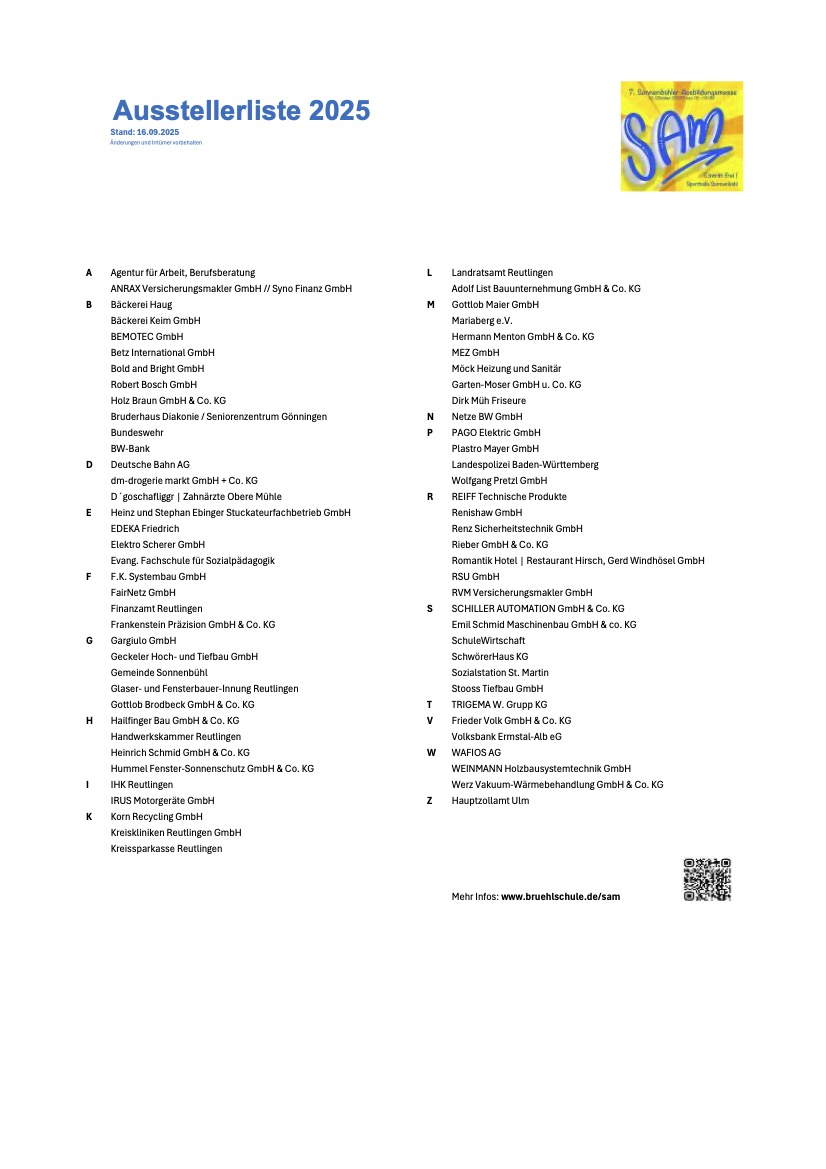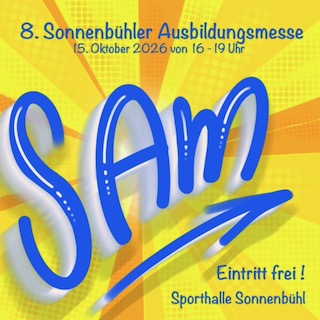 die 8. SAM gibt am Donnerstag, 15.10.2026 von 16 bis 19 Uhr einen kompakten Überblick über Ausbildungsberufe und ist gleichzeitig eine wichtige Plattform für Arbeitgeber, sich als leistungsfähiges und zukunftsorientiertes Unternehmen in der Region zu präsentieren.