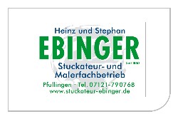 | Heinz und Stephan Ebinger Stuckateurfachbetrieb GmbH Achalmstr. 95 72793 Pfullingen www.stuckateur-ebinger.de | ||