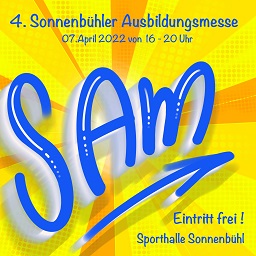 Mehr als 30 regionale Ausbildungsbetriebe haben sich für die diesjährige SAM angemeldet. Wir freuen uns auf einen lebhaften Infoaustausch, gute Gespräche und erstklassige Kontaktmöglichkeiten für unsere Schüler*innen und Schüler am Donnerstag. 07. April 2022 von 16 bis 20 Uhr in der Sonnenbühler Sporthalle.